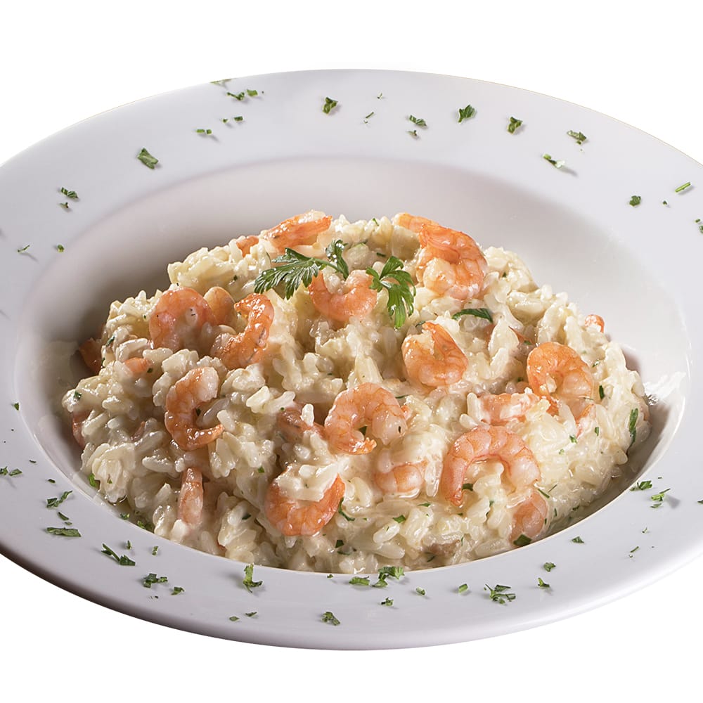 220g de arroz cremoso, preparado com 100g de camarão, aplicado o tempero Sal e Brasa. Encorpado com molho branco e queijo muçarela.